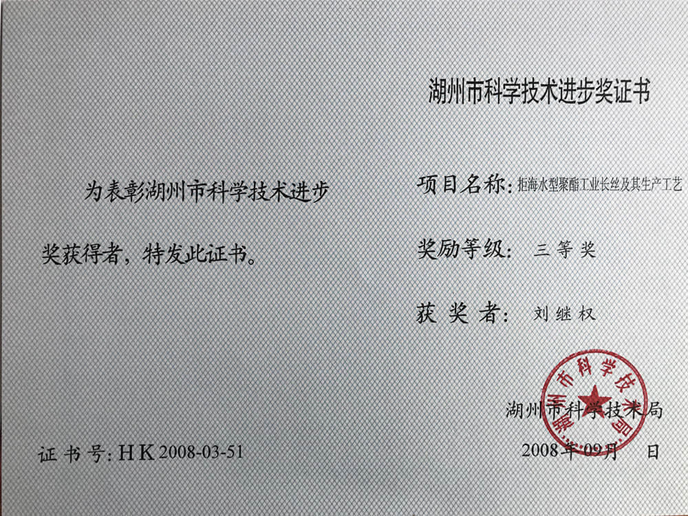 • 2008湖州市科技進(jìn)步獎(jiǎng)三等獎(jiǎng)-張金德